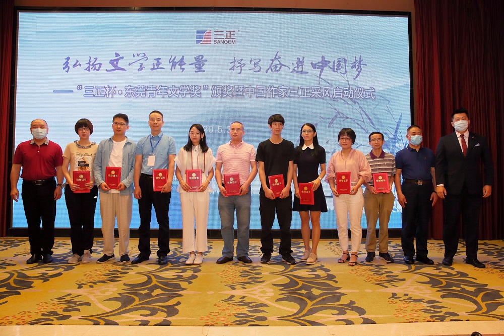 據悉,「三正杯·東莞青年文學獎」是由東莞市青年產業工人作家協會、民建東莞市文化工作委員會主辦,廣東三正集團冠名。參評作者必須在東莞生活、學習或工作連續2年以上、年齡在45周歲以下;參評作品必須是2019年1月1日至2019年12月31日期間,在省級以上文學期刊發表或具有國內正式出版社出版的各類文學作品。活動當天,民建廣東省委會副主委、東莞市人大常委會副主任周楚良,三正集團總裁辦主任蔣永林,《作品》雜誌社社長楊克,《作家》雜誌社主編宗仁發、《星星詩刊》雜誌社主編龔學敏、廣東省作家協會副主席謝有順、著名評論家燎原、珠海市作家協會主席盧衛平、東莞市作家協會常務副主席胡磊、原東莞市作家協會主席詹谷豐、東莞文藝評論家協會副主席譚軍波、東莞市青工作家協會主席彭爭武等20位知名作家,以及獲獎的青年作家出席了活動。