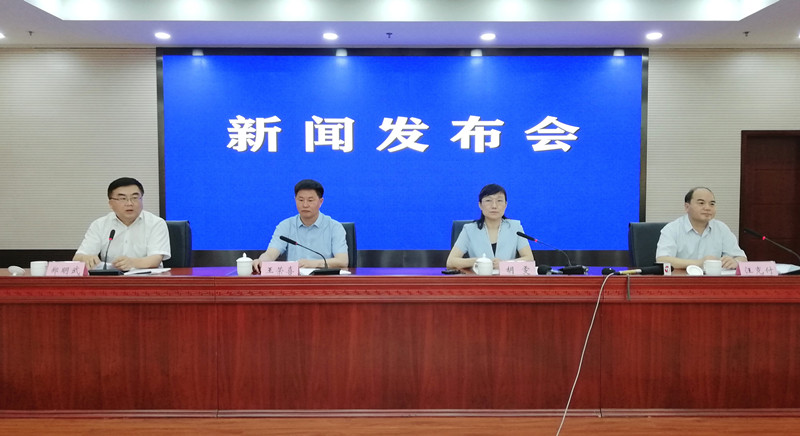 發佈會現場。安徽省委宣傳部副部長、省政府新聞辦主任鄭明武主持,王榮喜、胡雯、汪克付先後介紹相關情況並答問