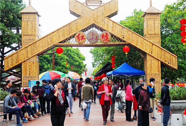 賞花的同時還可以領略紅山的鄉村風情,到古墟集市購物、品農家美食,到農家樂嘗當地特色菜。紅山村中鋪設的「淺谷綠道」2.6公里,全程為平整的瀝青路面,非常適合徒步或騎行。沿着綠道騎行,可到其中的紫荊綠道、廉政廣場、紅谷河、紅山湖、觀蓮小徑、山歌長廊等景點。市民可到村中的單車驛站或居民處租賃單車騎行,感受道路兩旁的芳草香。從村中心廣場進去,有一條3公里的綠道,綠道兩邊環境美不勝收,徒步大約40分鐘,到達深谷瀑布景點後,有望瀑台、石上背瀑布等,在望瀑台觀看傾斜而下的瀑布,讓瀰漫的水霧驅散身心的疲憊。除了賞油菜花、品農家美食外,紅山村的村祠和客家文化遺迹也都值得一看,紅山村擁有濃厚的歷史文化底蘊。目前村中保留的文化遺迹有李家祠堂、盤古王遺迹、洪聖古廟遺迹、抗日戰爭時期日軍駐軍戰壕等。