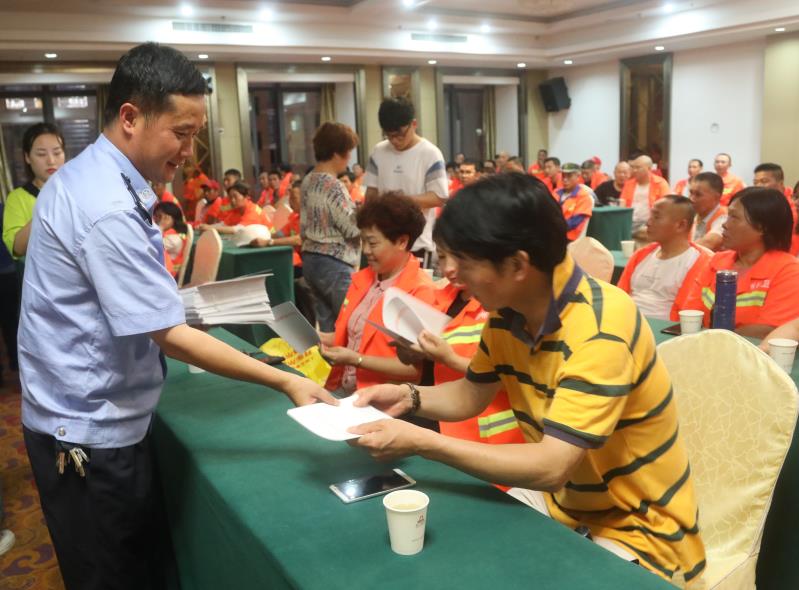 民警以一些常見的交通違法行為作為反面教材,分析交通違法行為的危害性,提醒洒水車、垃圾運輸車駕駛員在交通出行和作業時,一定要以安全為首要,做到開車不喝酒、開車不求快、疲勞不開車,養成良好的駕駛習慣,確保出行安全。