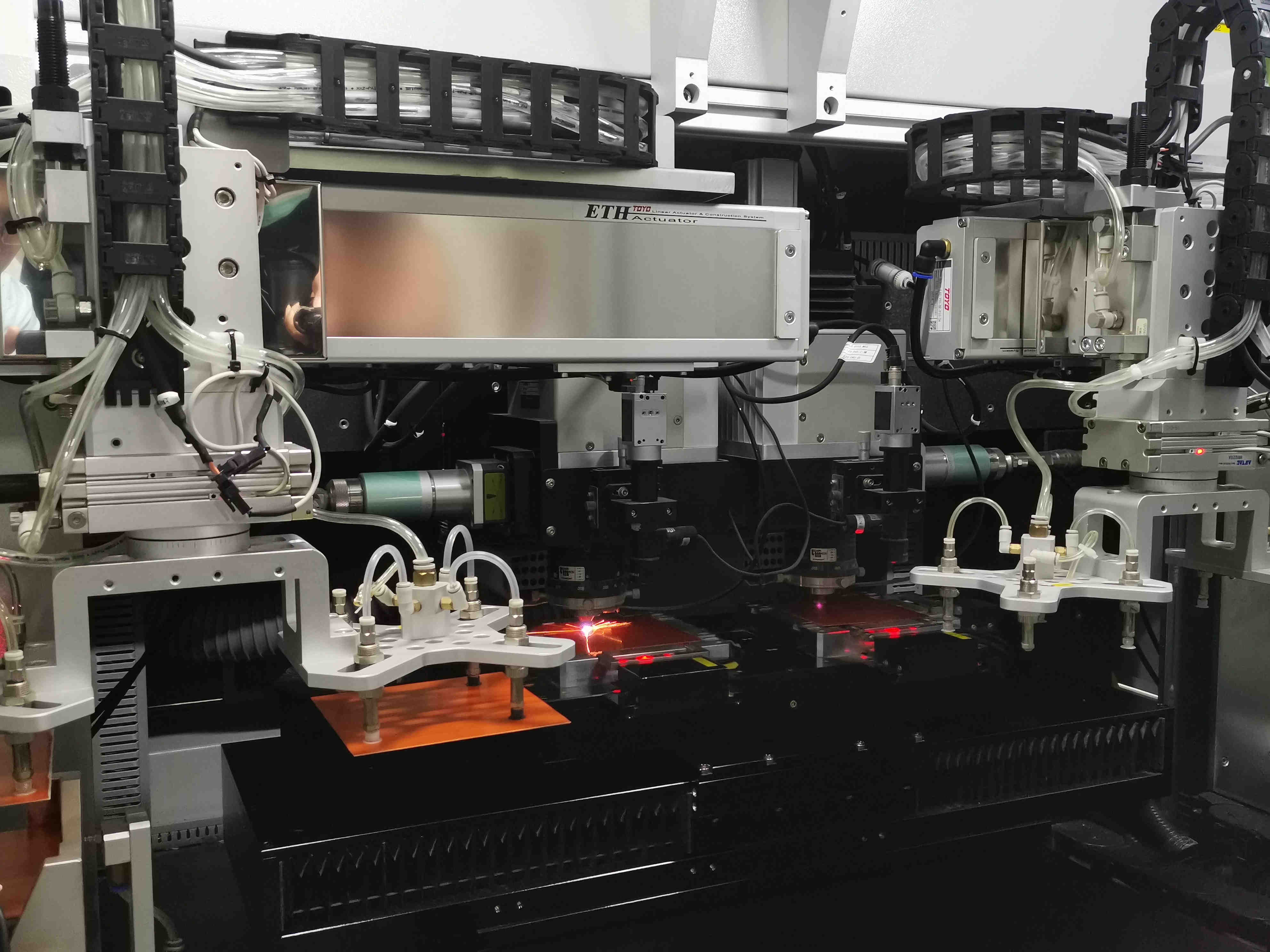 賽創電氣(铜陵)有限公司是國內第一家全製程封裝陶瓷基板工廠。圖為激光鑽孔(柏永/攝)