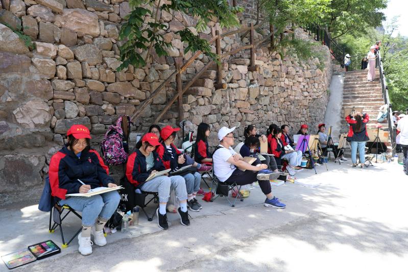 在石板岩鎮古蒼溪水畔,一群高中生正在用畫筆記錄石板岩的獨特風景。帶隊的新鄉美高教師馬君告訴記者:「這次來的學生有100多人,吸引我們的不僅是這裡的美景,還有便捷的交通。道路從山下一直通到山頂,不管是我們住的民宿門口,還是寫生的深山裡,安全平整的道路給我們的寫生之旅提供了保障,減少了阻礙。」