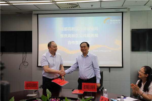 當天舉行的成渝高新區合作發展簽約儀式上,成都高新區社區發展治理和社會事業局與重慶高新區公共服務局、重慶高新區政務服務和社會事務中心分別簽署了《共同推動成渝雙城經濟圈建設 促進公共服務共建共享合作協議》《共同推動成渝雙城經濟圈建設 人力資源和社會保障合作協議》,明確推進兩地人才流動、就業創業、技能培訓、勞動仲裁、智能建設等方面合作共享,力爭引領成渝全面合作共享發展。