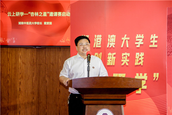 活動現場,湖南中醫藥大學還為疫情期間優秀學生志願者代表授勛,並啟動了湘、港、澳大學生創新實踐「雲研學」「杏林之星」邀請賽。