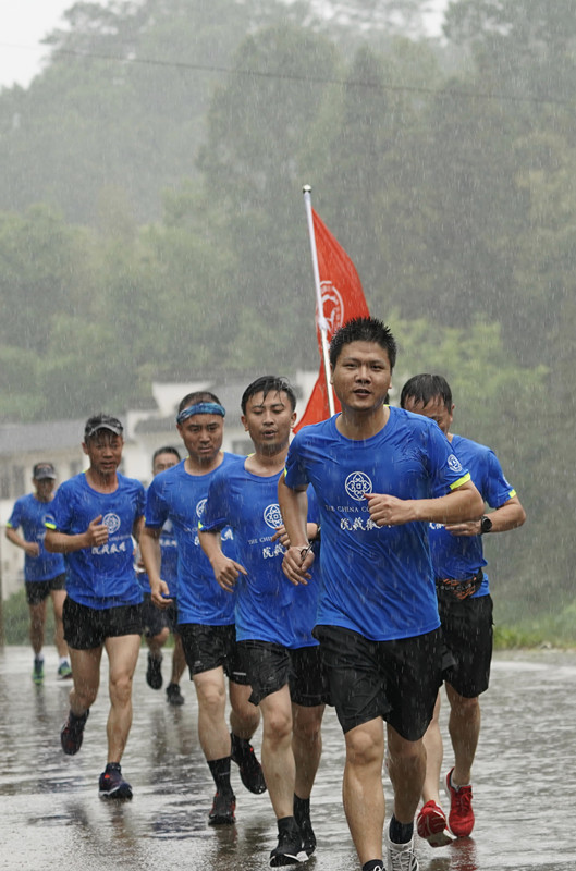 【香港商報網訊】6月6日7時許,中國科大EMBA戈15戰隊黃山拉練在安徽黄山市徽州區潛口鎮的院藏徽州啟動,近50名來自中國科大EMBA的參賽隊員在震天的口號聲中冒雨開跑,揮灑汗水,擁抱30公里的拉練挑戰。