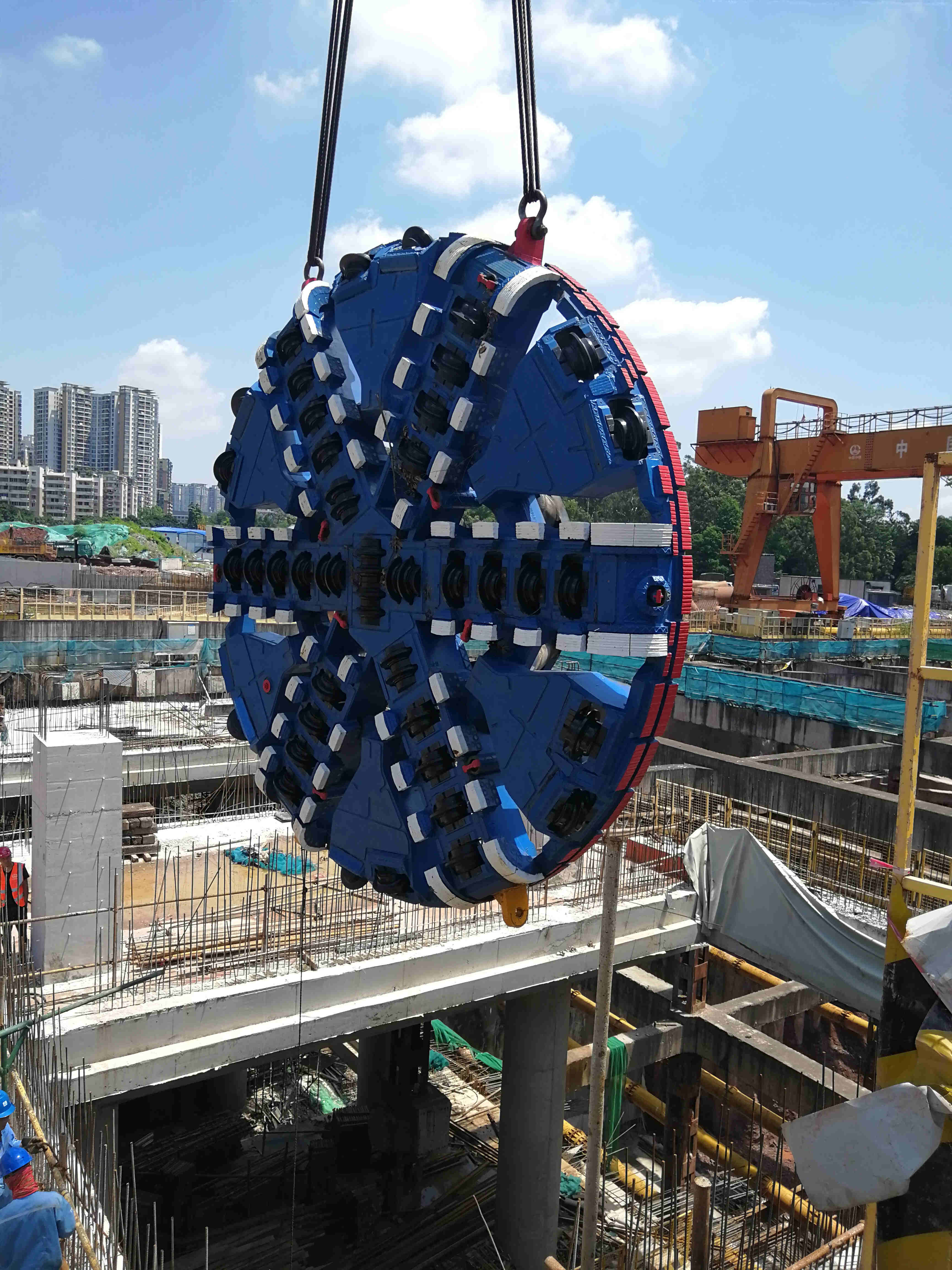第一道難關是穿越三種地層。盾構機掘進過程中,先後遇到了強分化、中分化及微分化的泥質礫岩和泥質粉砂岩等,這些地層土質粘粒含量較高,容易粘在盾構機刀盤上。同時,掘進過程中產生的高溫會致使粘粒迅速變硬,牢牢附着在刀盤上,極難被清除,形成「結泥餅」現象,使得刀盤失去切削作用。