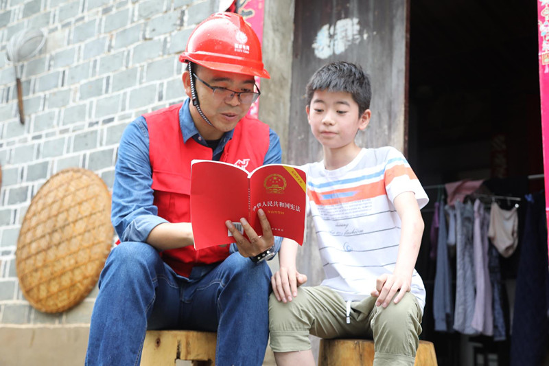在普法宣傳中,該公司在一線開展主題為“在憲法指引下,全面做好農網建設,助力脫貧攻堅”為主題的宣講活動,圍繞憲法、電力法、電力設施保護等方面內容,對參與農網改造各施工隊伍進行普法宣傳,提升電網施工人員的守法意識和依法履職的自覺性;在普法宣傳進鄉村活動中,組織志願者走村入戶、發放宣傳手冊、為群眾解答憲法等相關法律知識內容。截至目前,共向群眾發放憲法知識宣傳單1700份、憲法讀本360份;在普法宣傳進社區活動中,志願者與社區工作人員聯合開展憲法宣傳講解活動,並以身邊發生的真實案例為範本,講解勞動法、合同法、物權法以及民法等內容,向廣大社區居民開展法制宣傳教育。