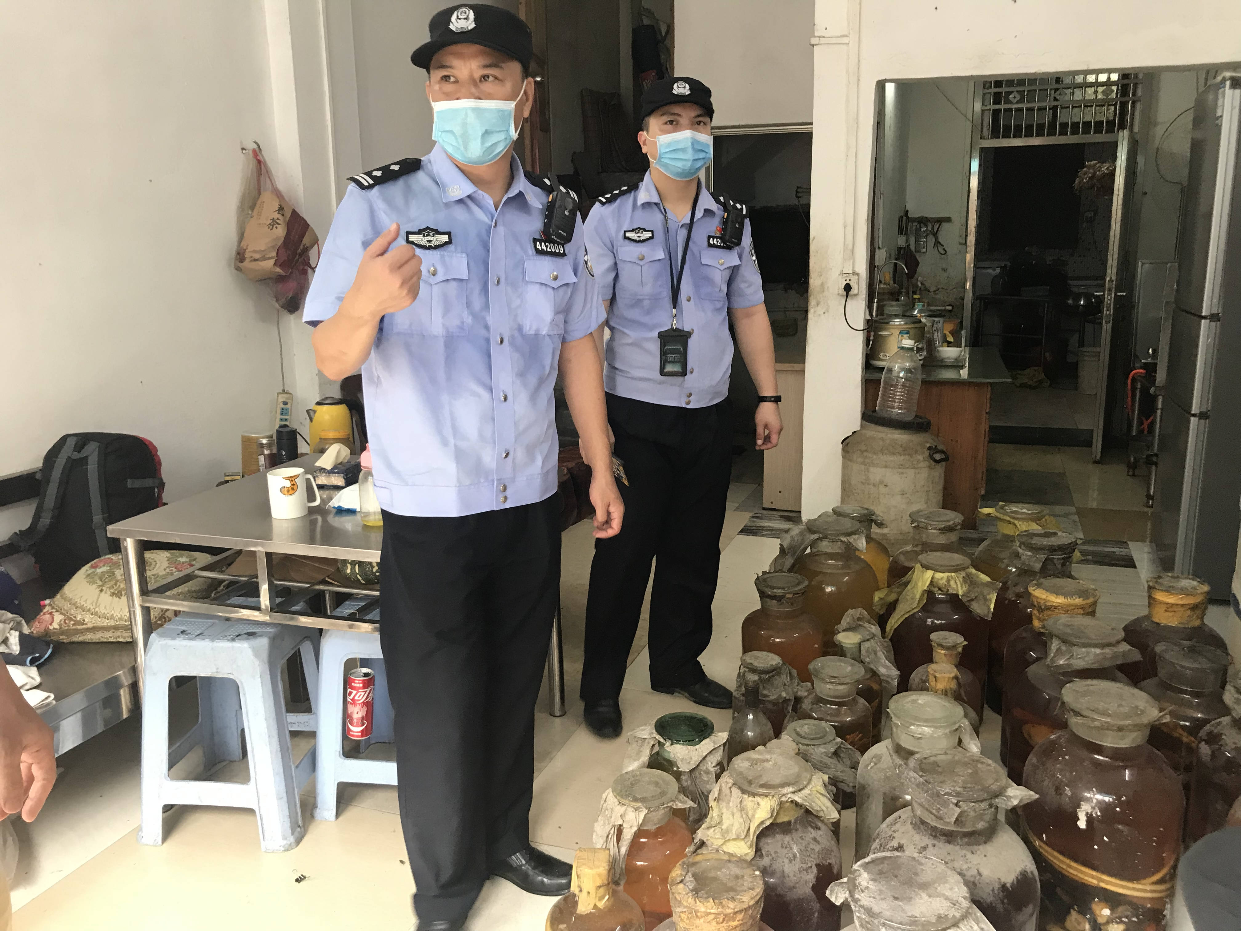 其中,今年5月21日,珠海市公安局斗門分局會同森林分局在珠海市斗門區開展聯合檢查時,發現有疑似國家重點保護動物製品一批,現場查扣疑似野生動物製品泡酒類34瓶,當場將犯罪嫌疑人鄧某花(女,廣東佛山人)傳喚至公安機關進行調查,經查,鄧某花有非法出售國家珍貴、瀕危重點保護動物的犯罪前科。
