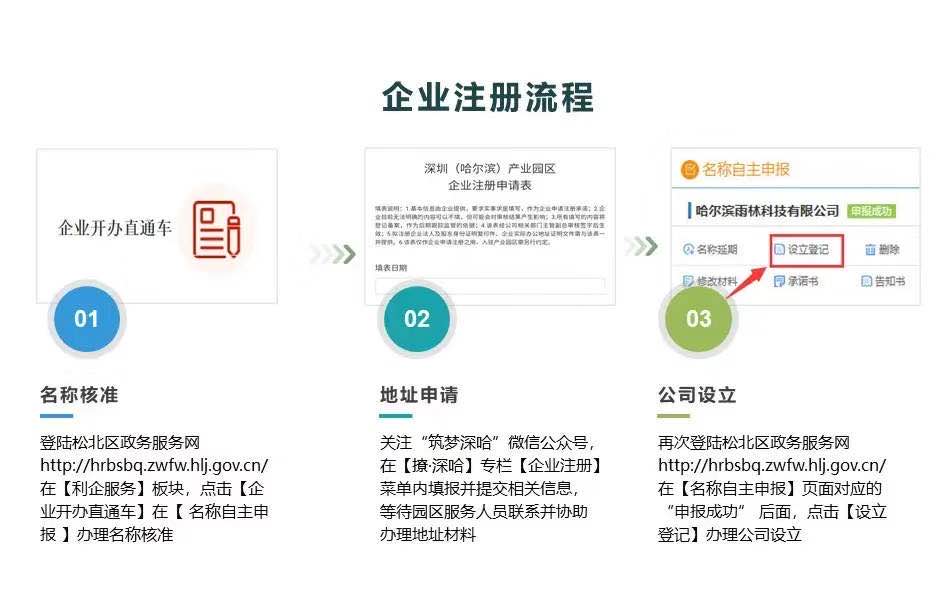 園區集群登記地址申請採取「不見面」的方式全程網上受理。擬註冊企業完成名稱核准後可點擊文末【閱讀原文】或關注「築夢深哈」微信公眾號,在【撩·深哈】專欄【企業註冊】菜單內填報並成功提交相關信息後即可進入集群登記地址申領流程。成功申領集群登記地址的企業通過政務服務網智能秒批通道,「告知承諾、容缺受理」等特色創新服務,最短1個工作日即可取得營業執照。截至目前,已有28家企業成功在園區集群地址完成登記註冊。