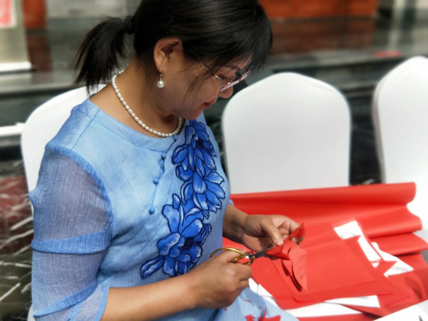 活動主會場設有舞台表演、展示製作、“非遺”宣傳三大板塊。現場,刻葫蘆、蘭州剪紙等靜態“非遺”項目傳承人則現場製作、現場表演。“作為一名民間藝人,保護、挖掘、發揚民俗文化是我應盡的義務。”甘肅非物質文化遺產傳承人朱宜英一邊剪紙一遍說,剪紙有圖必有意,有意必吉祥,這也是蘭州剪紙乃至中國剪紙廣受歡迎的原因。據了解,其作品此前被俄羅斯一高校收藏。目前朱宜英在七里河區各小學進行授課,為剪紙傳承默默奉獻着。