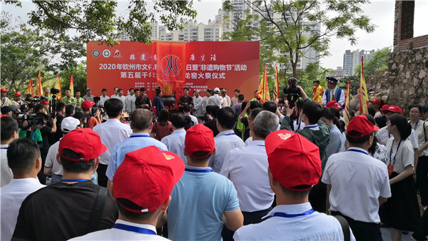 【香港商報網訊】6月13日,2020年欽州市文化和自然遺產日暨「非遺購物節」活動、第五屆千年坭興陶古龍窯火祭儀式在廣西欽州欽江古龍窯舉行,具有600多年歷史的坭興陶古龍窯當天開窯,近萬件坭興陶精品正式亮相。