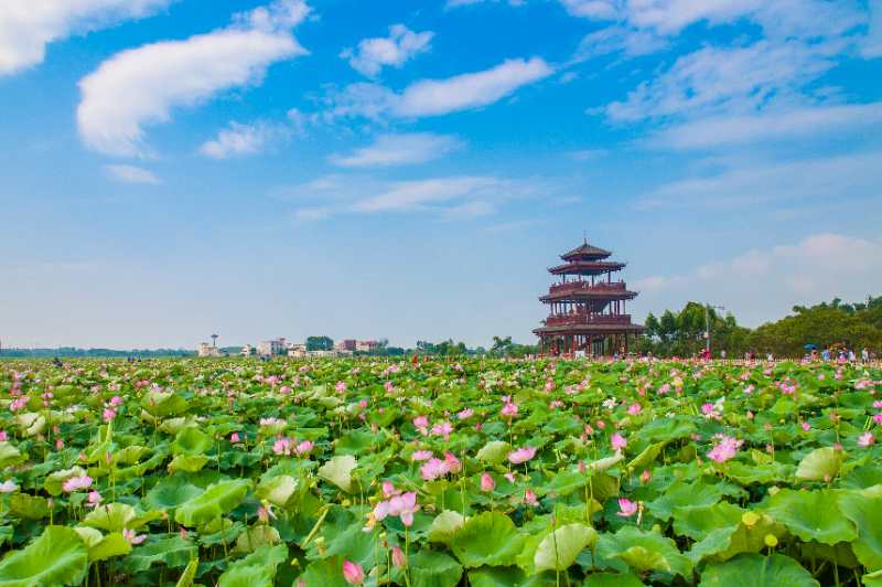 據悉,「荷美覃塘」是國家AAAA景區,圍繞「生態農業、休閑養生、文化傳承」,以荷花為主題,建成了藕遇荷花精品園、風雨橋、醉蓮閣、荷花科普館、兒童娛樂中心、汽車營地、精品民宿等配套設施,形成了春遊芳草地、夏賞萬畝荷、秋品香水蓮、冬吃九孔藕的四季宜游景區。「荷美覃塘」已經連續舉辦了六屆荷花節,其中2018年還成功舉辦第32屆全國荷花展。2019年,「荷美覃塘」接待國內外遊客85.3萬人,再創新高。