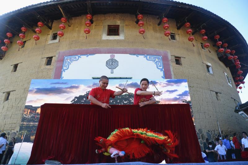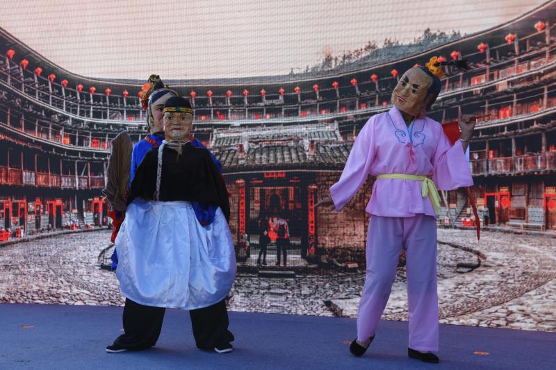 【香港商報網訊】6月13日是中國第15個「文化和自然遺產日」。當天上午,在福建土樓(南靖)景區世遺懷遠樓前廣場,木偶、長嘴壺、客家山歌、公背婆等非物質文化遺產相繼上演。