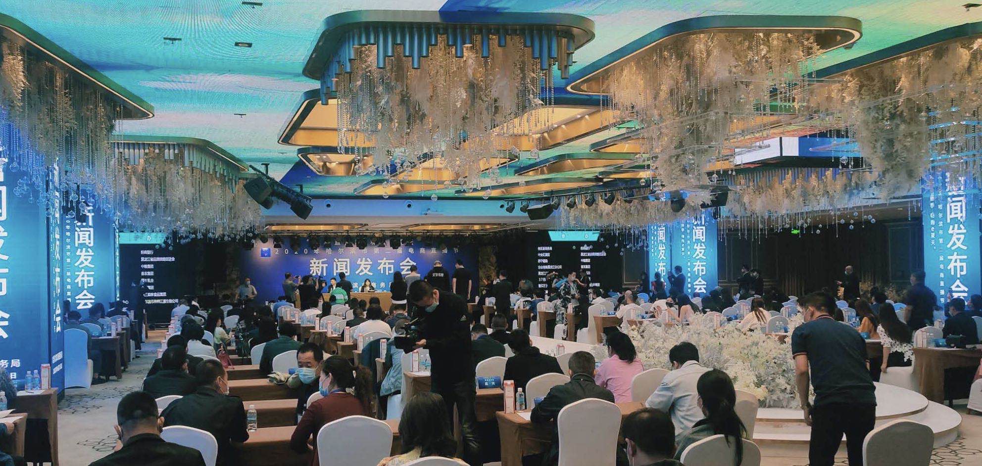 哈爾濱市商務局有關領導介紹了第二屆電商直播節活動的有關情況,並與活動承辦單位哈爾濱中關村孵化器、京彩時光互聯網發展有限公司、哈爾濱電子商務公司、哈西萬達公司以及贊助商MCN機構代表分別回答了記者提出的相關問題。