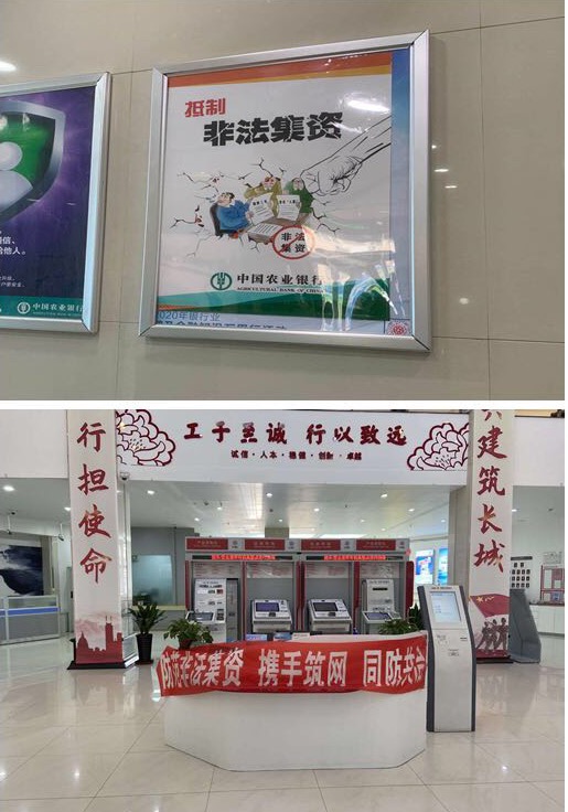 街道綜治辦、社區工作人員、志願者等通過對轄區物業、企業及個體工商戶、轄區居民發放宣傳資料,介紹非法集資的特徵、表現形式和常見手段,引導廣大居民深刻認識非法集資的社會危害性,真正做到「拒絕高利誘惑,遠離非法集資」。街道、各社區同時利用宣傳欄及LED電子顯示屏,面向社會進行宣傳。沿街商鋪在辦事大廳等顯著位置張貼防範非法集資的相關海報,引導群眾自覺遠離非法集資。在各卡口,小區庭院,社區志願者通過大喇叭進行宣講。