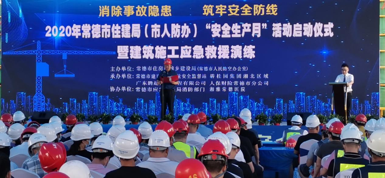 今年6月是全國第19個「安全生產月」,主題是「消除事故隱患,築牢安全防線」。6月15日,2020年常德市住建局(市人防辦)「安全生產月」活動啟動儀式暨建築施工應急救援演練活動,在常德碧桂園三標舉行。當天的活動中,現場演練模擬了施工現場發生外腳手架倒塌事故和施工臨時用電事故,演練過程中,參演人員有條不紊,快速反應,配合默契,順利完成了各項科目的演練。