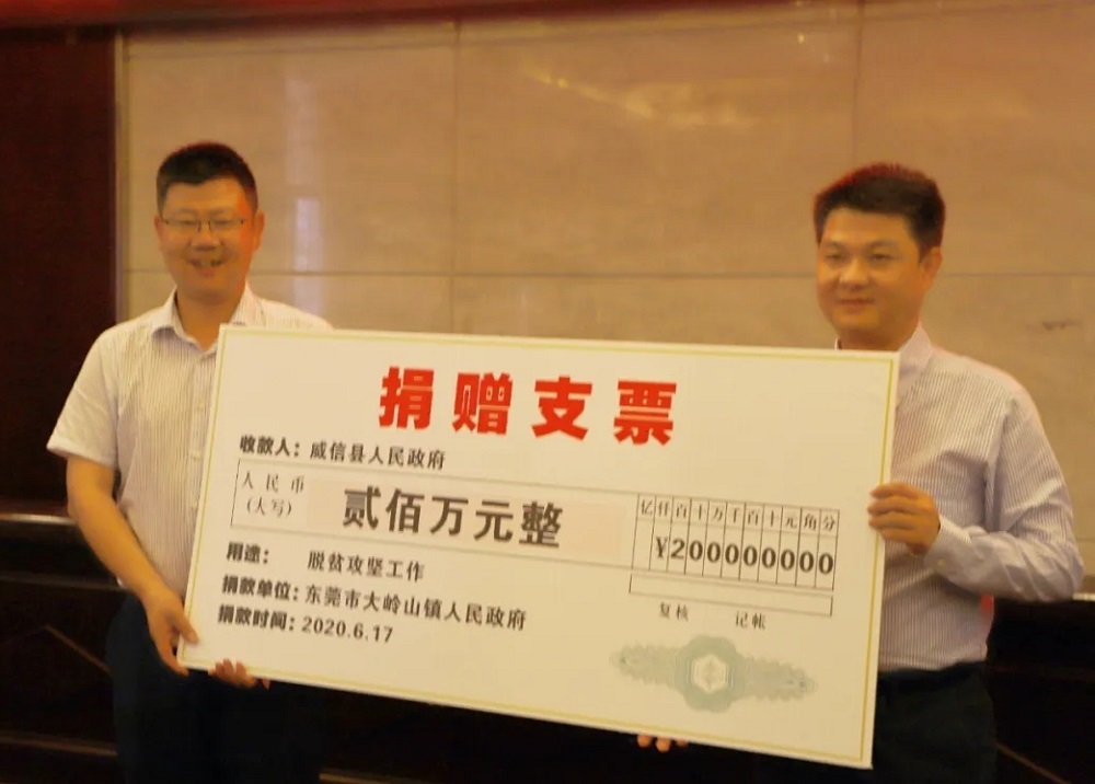 大嶺山鎮向威信縣捐贈200萬元扶持資金