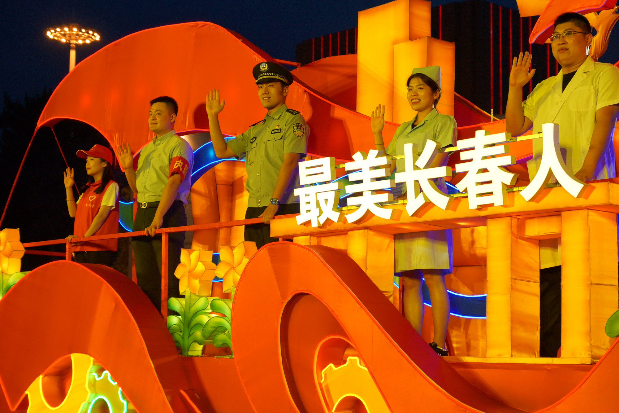 啟動儀式後,舉行了盛大的花車巡遊活動。在炫目的紅旗H9新車的引領下,首輛花車——「最美長春人」亮相,三面鮮艷的紅旗象徵著長春的工業地位、農業基礎、服務業先行的城市特點。極具衝擊力和動感的線條、力量感十足的齒輪、長春城市之花君子蘭的造型,充分展現了寬容大氣、自強不息的城市精神和奮發拼搏的長春人的精神。車上站立的醫生、護士、公安幹警、社區工作者和志願者代表向人們揮手致意,傳遞着全市人民「同舟共濟、同戰疫情」的勇氣與決心。隨後「長春現代化都市圈」、「長春國際汽車城」、「冰雪長春」、「書香長春」「夜動春城」、「美麗鄉村」、「5A景區」等7輛主題花車相繼駛出,吸引了大量市民沿途觀看。