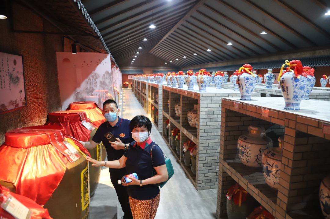 在參觀玉泉釀酒車間看到獨有的雙窖同釀,讓在場來賓嘆為觀止,在品嘗酒糟花生、酒糟雞蛋,來賓表示食之味道獨特,別有一番風味。