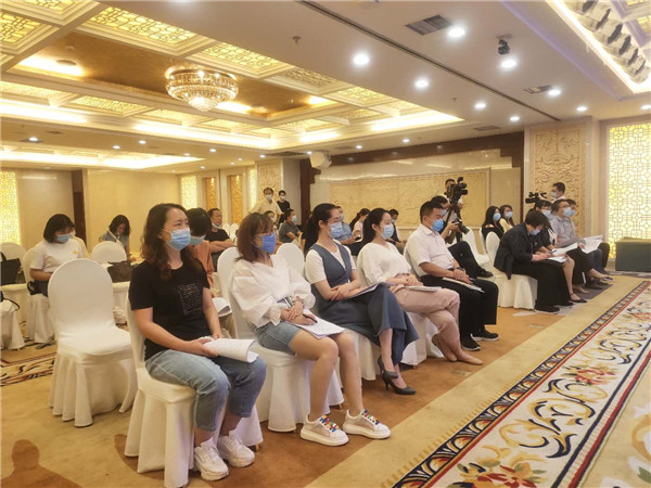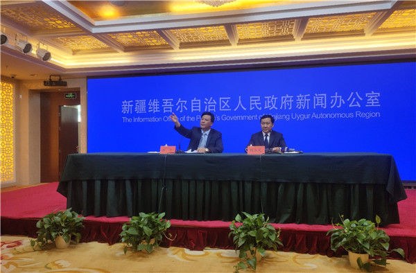 自治區教育廳黨組成員、副廳長、新聞發言人劉玉光(右);自治區新聞辦對外聯絡處處長李潔(左)