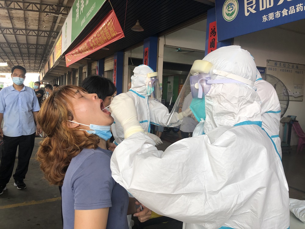 【香港商報網訊】23日,記者從廣東省東莞市橋頭鎮獲悉,為做好農貿市場等重點場所人員、環境和重點產品的疫情防控工作,6月22日至23日,橋頭將分批、分次完成全鎮8個農貿市場2100多名從業人員的核酸檢測,做到「應檢盡檢」。