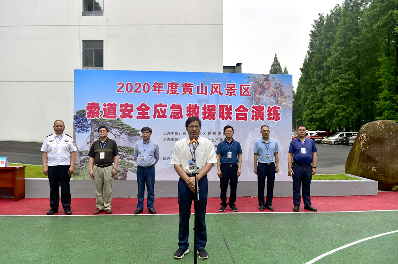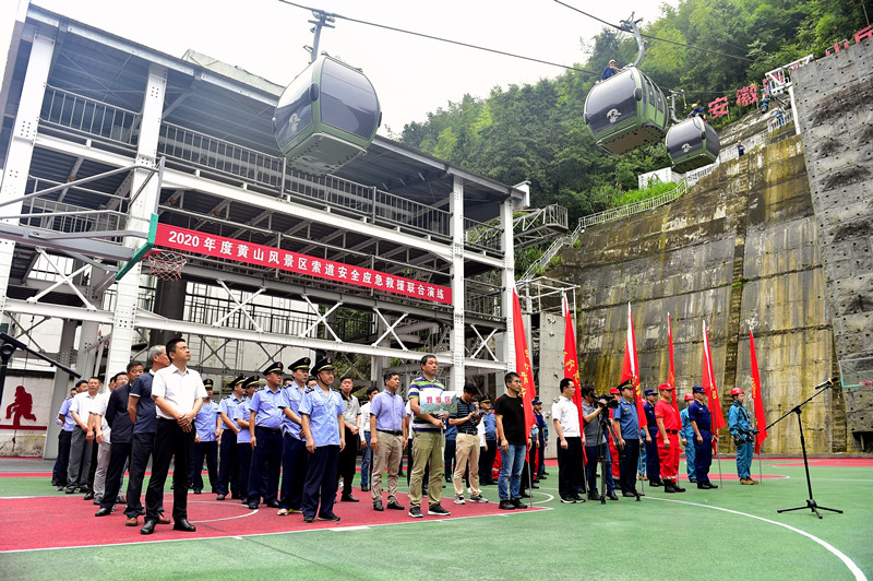 【香港商報網訊】6月23日,黃山風景區開展了2020年度索道安全應急救援聯合演練。景區黨工委副書記、管委會副主任洪建春擔任演練總指揮並講話。景區黨工委委員徐立秋、章德輝擔任演練副總指揮。