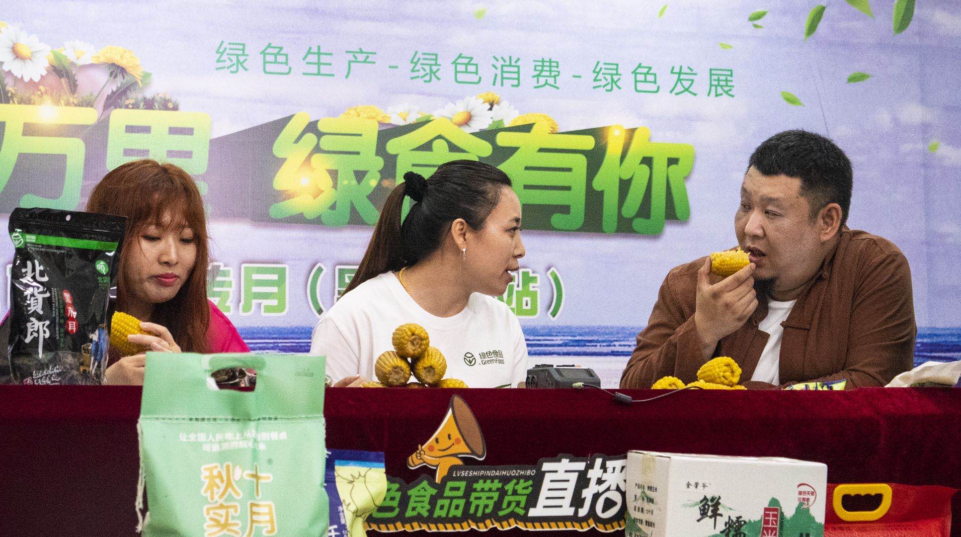 肇州糯玉米企業代表做客直播間 張柏林/攝