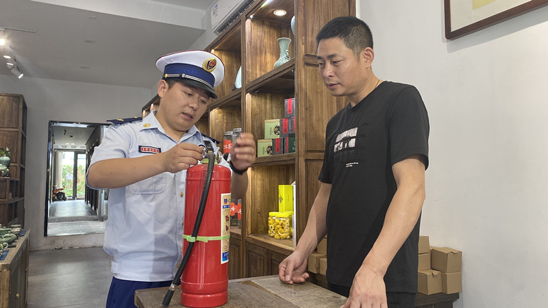 與此同時,為打造立體式防控智慧消防新模式,老街專職消防隊每天還對屯溪老街各類商戶、各條街巷開展全面的安全檢查,實施“一戶一策”、“一家一檔”,對檢查所發現的問題,制定科學有效的解決方案,並督促、協助商戶整改,形成閉環,確保屯溪老街夏季安全生產。