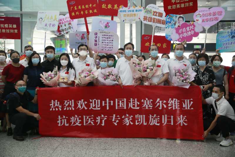 【香港商報網訊】6月26日,中國政府派出的援外抗疫醫療專家組中在外工作時間最長的一支隊伍—中國赴塞爾維亞抗疫醫療專家組,結束隔離休整期,安全返回廣州。廣東省衛生健康委副主任陳祝生和各派員單位領導等當日到機場迎接。