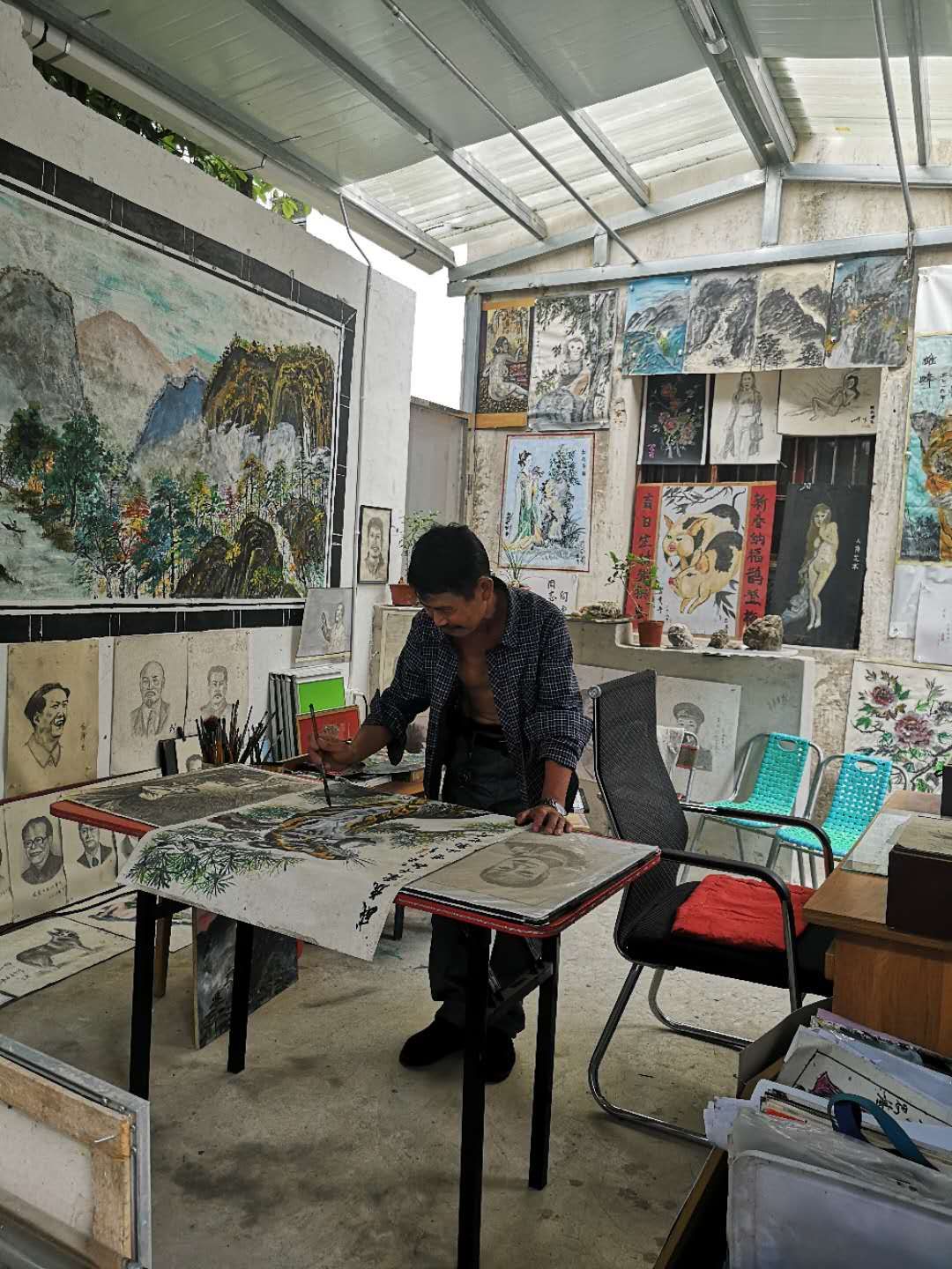 “當初日子難過,我一心就是要擺脫貧困,如今精准扶貧讓我重拾夢想,咱們老百姓除了脫貧致富,也要把日子越過越精彩。”葉拾斤口中的夢想是繪畫,儘管每天為了生計奔波,他也要抽空拿起畫筆學習創作。