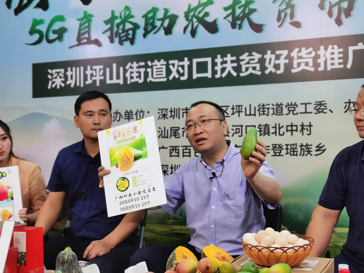 6月29日下午,由坪山街道黨工委、辦事處主辦,汕尾市陸河縣河口鎮北中村、百色市田東縣作登瑤族鄉協辦,深圳新聞網承辦的「為陸河、田東打call!5G直播助農扶貧帶好貨」推廣直播公益活動火爆上線。