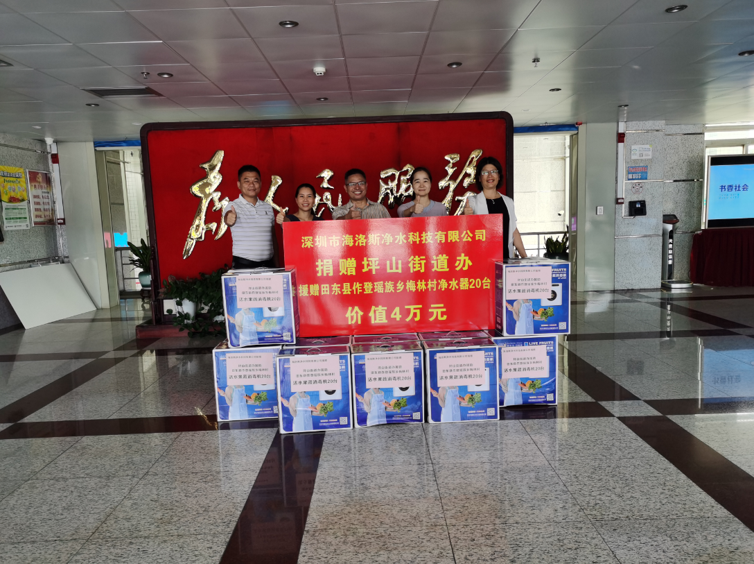 一場直播,一次公益,一群人的購物狂歡,一個個具有社會責任感的企業,深圳市同安玩具有限公司、深圳市坪山新區童夢世界工藝品廠、深圳市樂中行科技有限公司這些坪山轄區企業捐贈直播現場互動贈品;深圳市達科為生物工程有限公司向陸河、田東捐贈5000份核酸檢測採樣管和採樣拭子,價值10萬元整;深圳市超躍食品有限公司捐贈豆漿100箱,價值15000元;海洛斯凈水科技有限公司捐贈價值40000元的20台凈水設備。