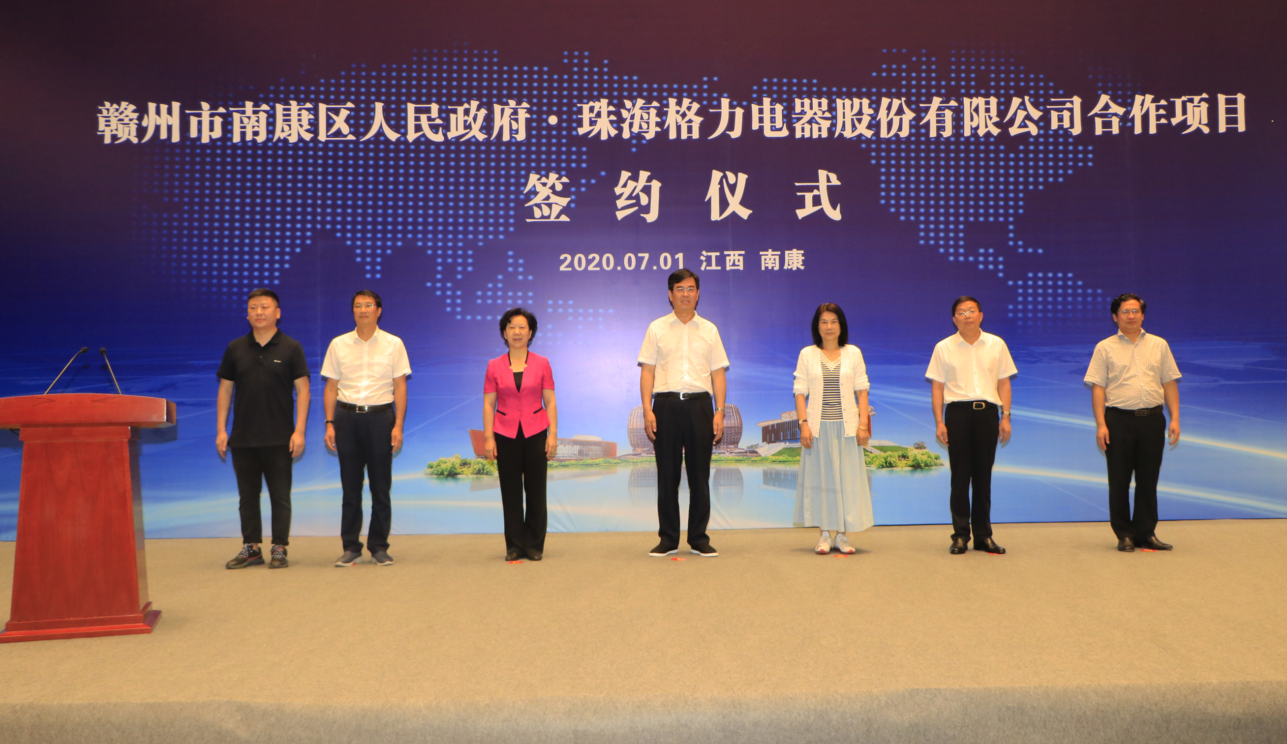 【香港商報網訊】記者 林穎萍 報導:7月1日,江西省贛州市南康區政府與珠海格力電器在南康區雙向開放服務中心正式簽約,標誌着珠海格力電器正式簽約落戶南康,這是珠海格力電器首次在江西投資的製造業基地項目。