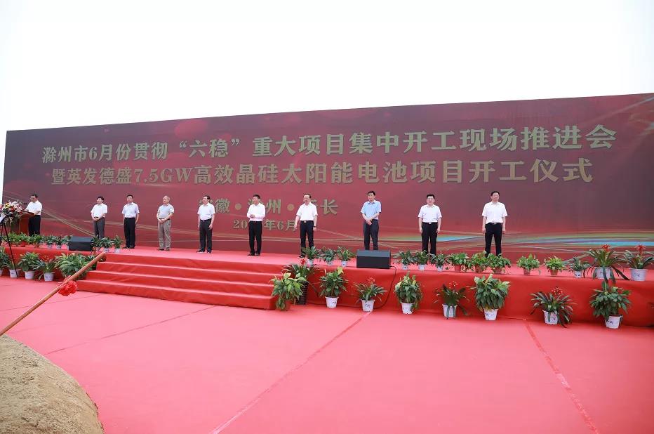 滁州市6月份貫徹「六穩」重大項目集中開工現場推進會暨英發德盛7.5GW高效晶硅太陽能電池開工儀式在天長市舉行