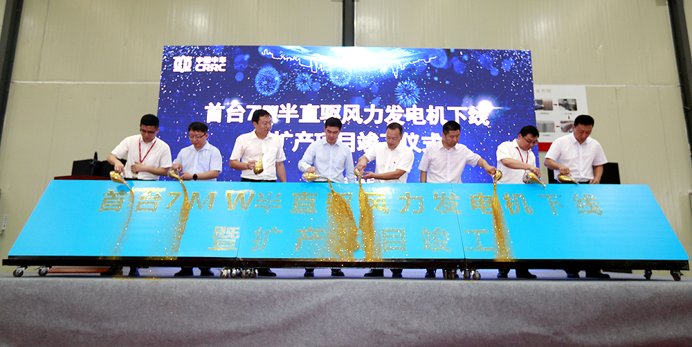 此次下線的7MW半直驅風力發電機是根據戰略合作夥伴明陽智慧需求,定製化研製產品,具有效率高、功率密度高、可靠性高、可維護性高、智能化程度高,溫升低、振動低、噪音低等「五高三低」的特點和優勢。一台7MW半直驅風力發電機裝機後,年發電量達三千萬度電,可以滿足全年一萬戶家庭的用電需求,具有很強市場競爭力。