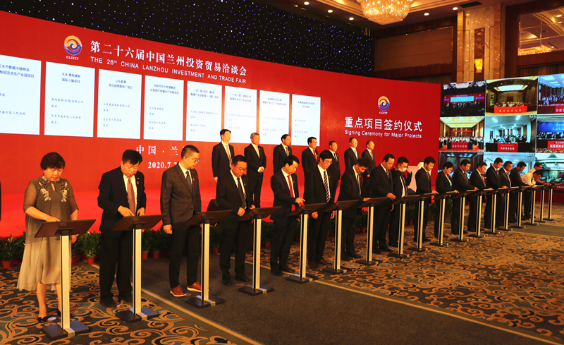 據悉,第二十六屆蘭洽會共簽約合同項目587個,簽約總額2730億元。其中中核四〇四嘉峪關生活保障區項目、蘭州新區高端農藥原葯及農藥中間體項目、恆大新能源動力電池項目、隴浙(頤高)數字經濟產業園項目、海升集團甘肅農業總部和研發中心項目、金昌高品質海綿鈦生產項目、玉門市首航節能光熱發電項目、張掖現代有軌電車項目、武威生態產業防沙治沙扶貧項目、白銀市牧原商品豬養殖項目、天水市智能冷鏈物流綜合樞紐及京東產業園項目、天水奧特萊斯國際小鎮項目、山東能源靈台縣燃煤電廠項目、慶陽市東方希望集團生豬現代養殖全產業鏈項目、一帶一路?潤澤(臨洮)智惠產業創新城項目、“一帶一路”美麗鄉村聯盟論壇永久會址項目、臨潭縣冶力關鎮青藏之窗·冶力之舟建設項目、永靖縣旅遊合作開發項目等18個具有代表性的重大項目在現場進行集中籤約,其餘項目由各市州分別組織專場簽約。