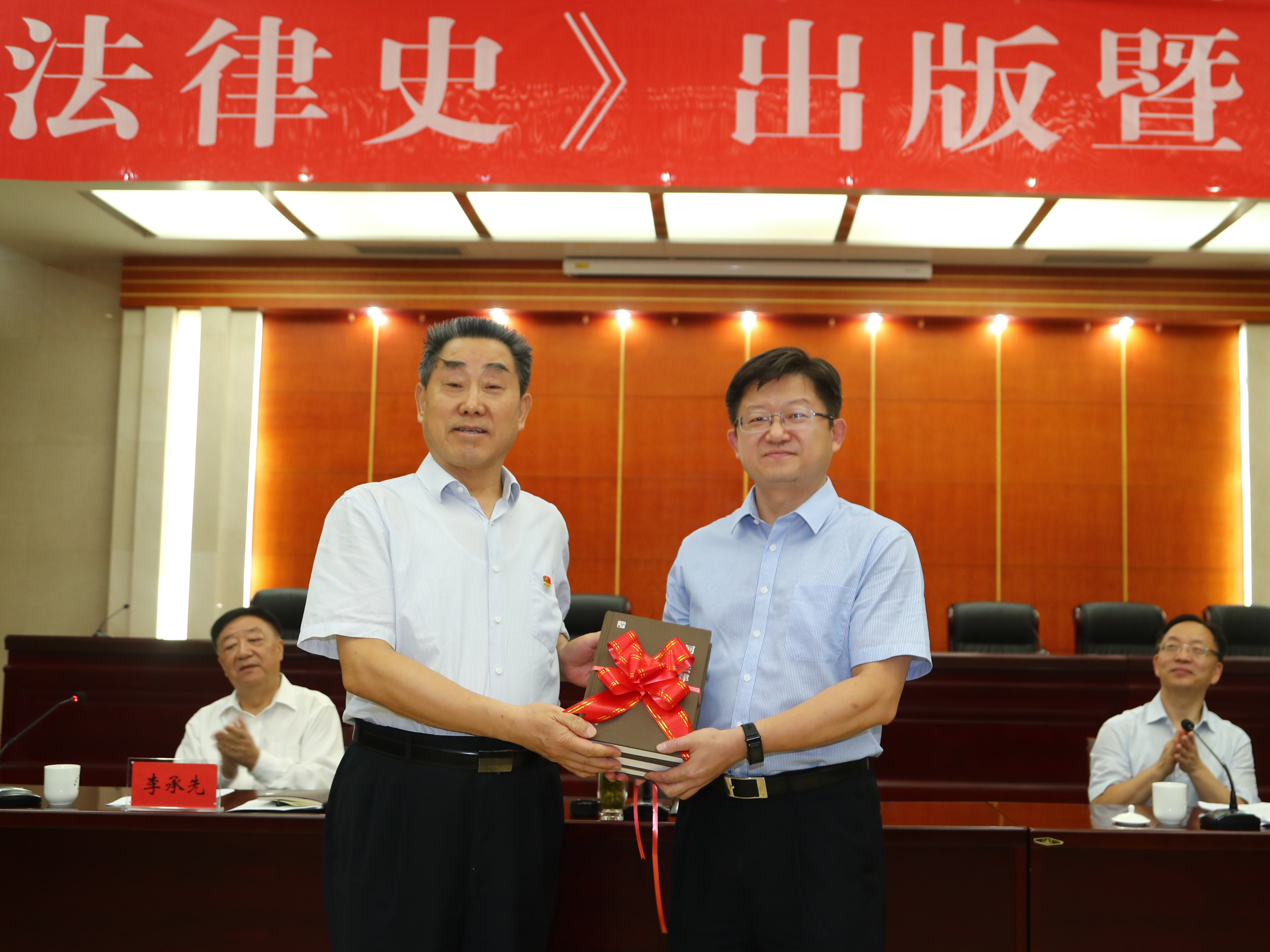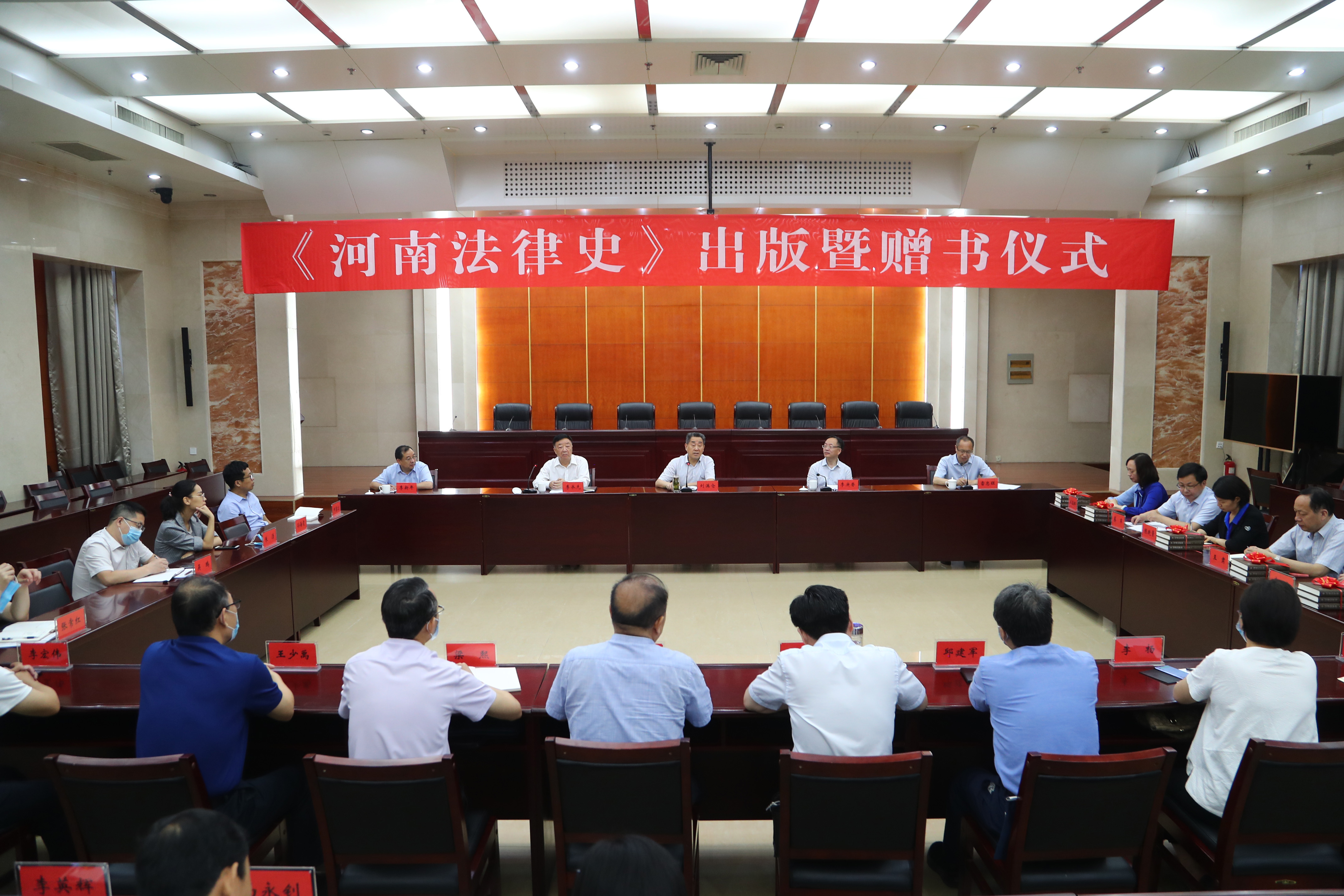 河南省法學會會長劉滿倉,河南省法學會黨組書記、常務副會長李承先,河南省社科聯主席李庚香,河南省社科聯副主席李新年等出席贈書儀式。河南省法學會黨組成員、秘書長雷忠旺主持贈書儀式。