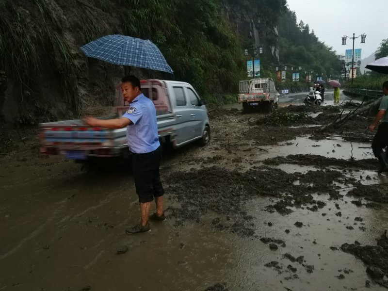 五點,郭忠偉和副教導員汪國軍一起趕赴西遞村,在途經S218線石山路段時遭遇山體滑坡,擋住去路,此時山體還有繼續坍塌的危險,但二人沒有任何猶豫,立即下車指揮交通、疏散車輛,並向上級報告,消除了一起極有可能發生的險情,保障了群眾的生命安全。