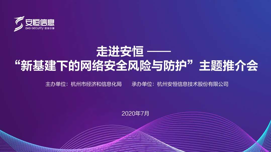【香港商報網訊】7月8日,「新基建下的網路安全風險與防護」主題推介會在杭州成功舉辦,本次推介會由杭州市經信局攜手杭州安恒信息技術股份有限公司聯合召開,面向製造業企業、工業互聯網平臺以及數字工程服務商,共同助力製造業企業在新基建浪潮下安全、高品質發展。