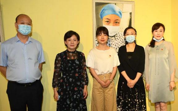 吉林省文旅廳廳長楊安娣(左二)與前衛醫院抗疫一線護士等人合影(吉林省文旅廳供圖)