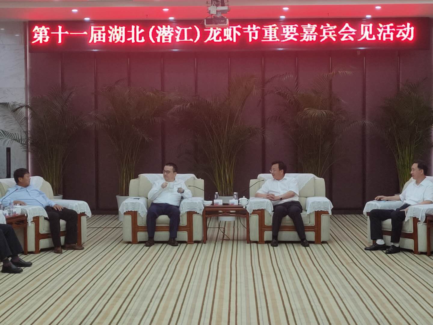 【香港商報網訊】7月11日下午,第十一屆湖北(潛江)龍蝦節暨第四節蝦—稻產業博覽會經貿招商活動在潛江市七喜國際大酒店舉行。會上,潛江市委書記吳祖雲、潛江市委副書記、市長龔定榮及相關單位負責人與客商代表親切交談,並就進一步加強合作,來潛投資等事宜進行了深入討論。