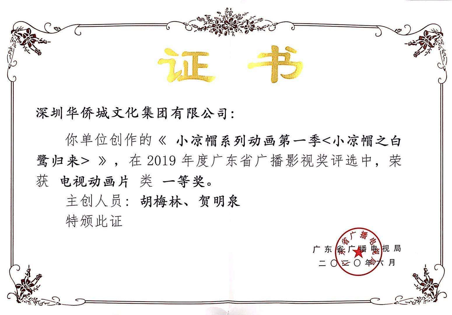 【香港商報網訊】近期,廣東省廣播電視局下發《關於印發2019年度廣東省廣播影視獎獲獎作品目錄的通知》,由華僑城文化集團出品的小涼帽系列動畫第一季《小涼帽之白鷺歸來》,榮獲「2019年度廣東省廣播影視獎」電視節目單元一等獎,也是該等級獲獎作品中唯一的一部電視動畫片。