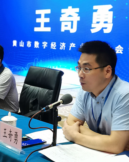 黃山市文投集團總裁兼雲海黃山大數據公司董事長、黃山市數字經濟產業促進會會長王奇勇讲话