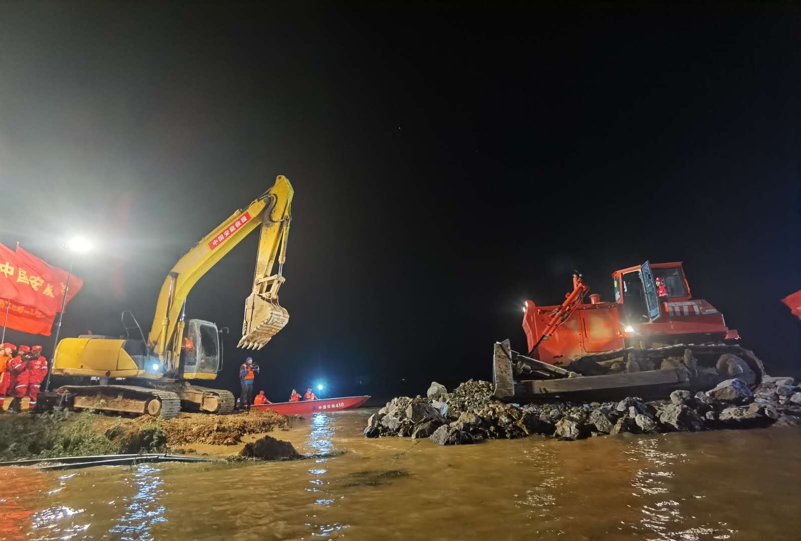 危難之處有鐵軍,中國安能第二工程局迅速從江西南昌、江蘇常州、福建廈門調集400餘名搶險人員、52台套裝備星夜馳援,並受領了鄱陽鎮問桂道圩堤決口的封堵任務。