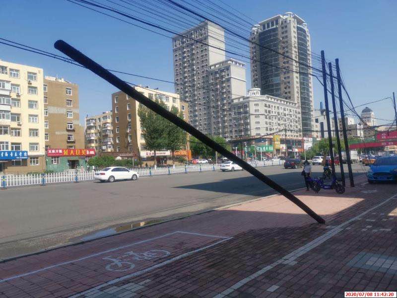近日,區指揮中心接到12319案件,有市民反映位於香坊區紅旗大街209-2號人行道邊木頭線桿嚴重傾斜,傾斜45度左右,要求馬上處理。區指揮中心接警後立即趕赴現場,到達現場後發現事發地點人行道上一高度約5米的黑色線桿,呈45度角傾斜於道路一側,過往車輛紛紛繞行,造成了極大的安全隱患。區指揮中心出警人員立即放置警示標識,提醒過往行人車輛注意安全,避免二次安全事故的再次發生,同時立即查找責任單位,經過多方聯繫查詢,最終確認此處線桿為通訊某部隊管轄。