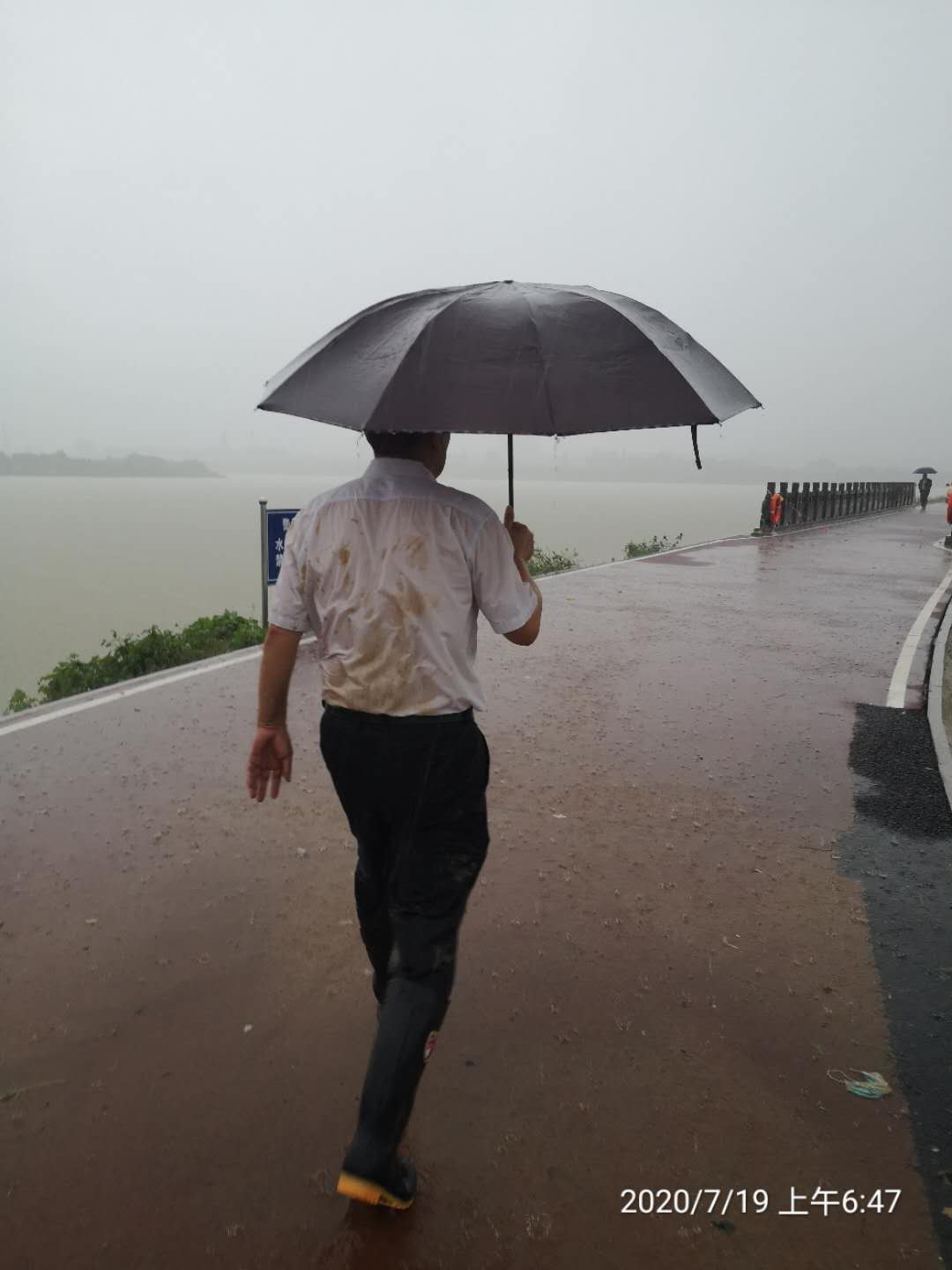 19日5點半,聽着窗外的雨聲,柏堰科技園城管大隊大隊長許忠貴就再也睡不着了。他索性一骨碌爬起來,驅車就去了柏堰湖大堤,「反正也睡不踏實,我去現場看看水情。」