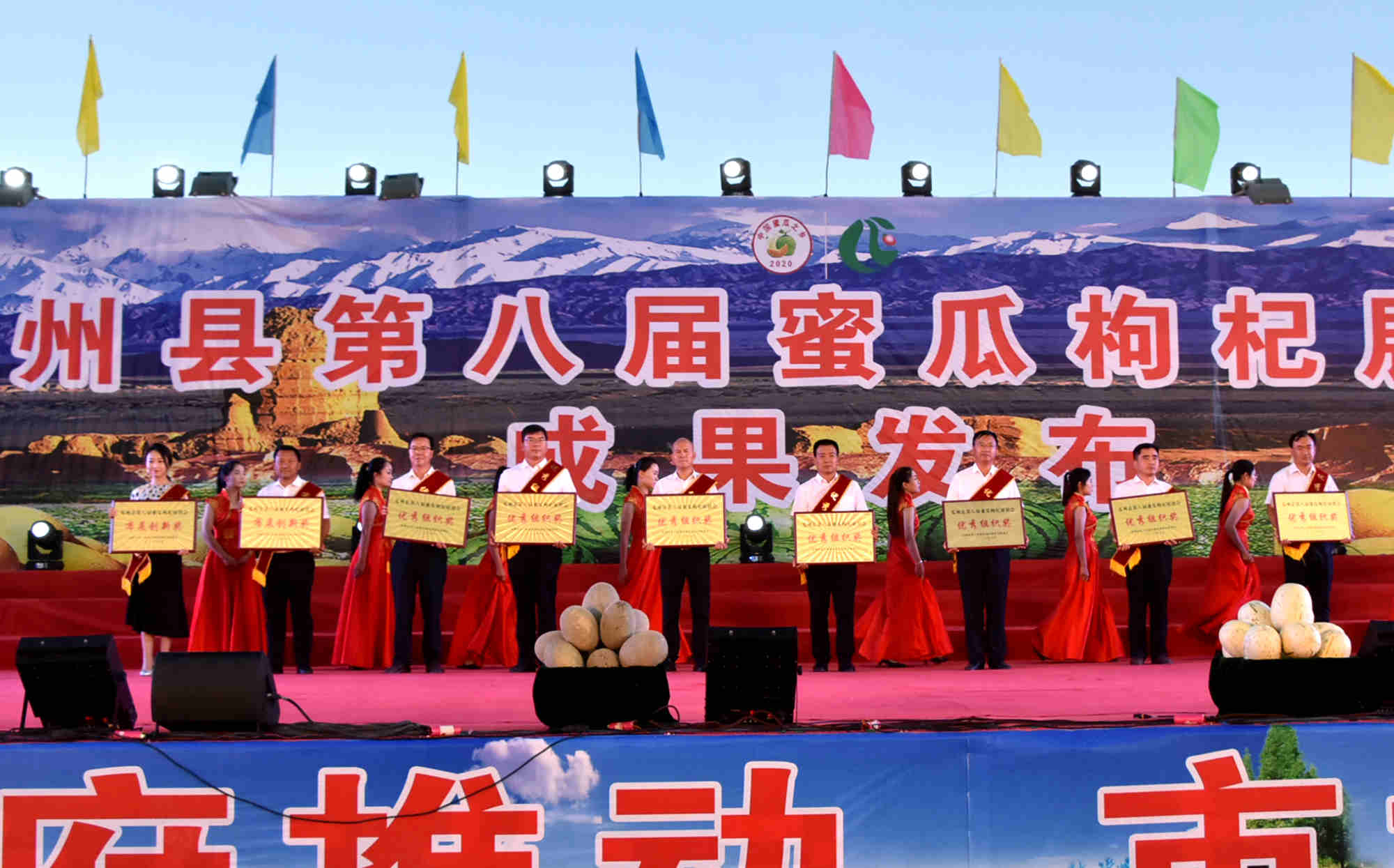 當晚的成果發布會上,除了通報本次節會所取得的成果外,還為本次蜜瓜枸杞展銷會評選出的蜜瓜銷售大王2名、枸杞加工銷售大王2名、蜜瓜、枸杞電商銷售大王2名、品牌包裝推廣獎2名、品牌包裝推廣獎2名、優秀布展獎6名、優秀組織獎7名、布展創新獎2名進行了頒獎。(寇剛 魏金龍 鄧曉旭 朱丹丹)