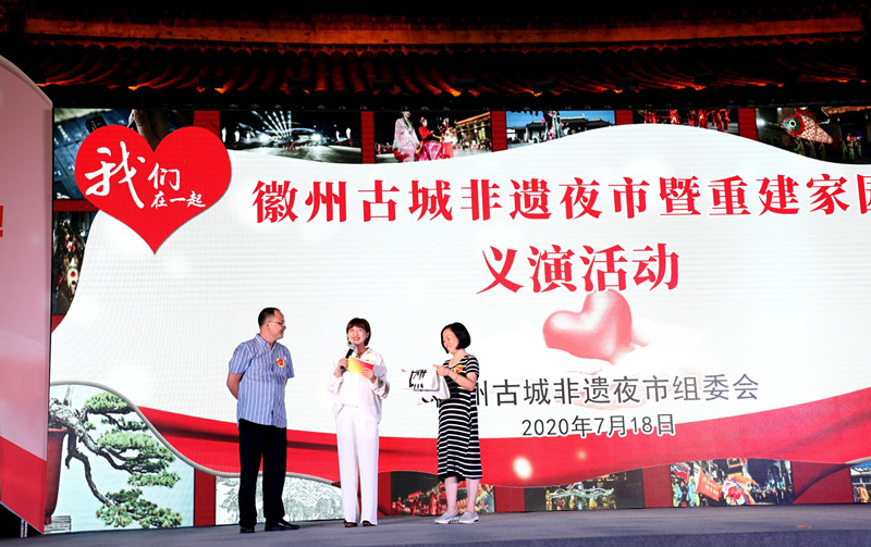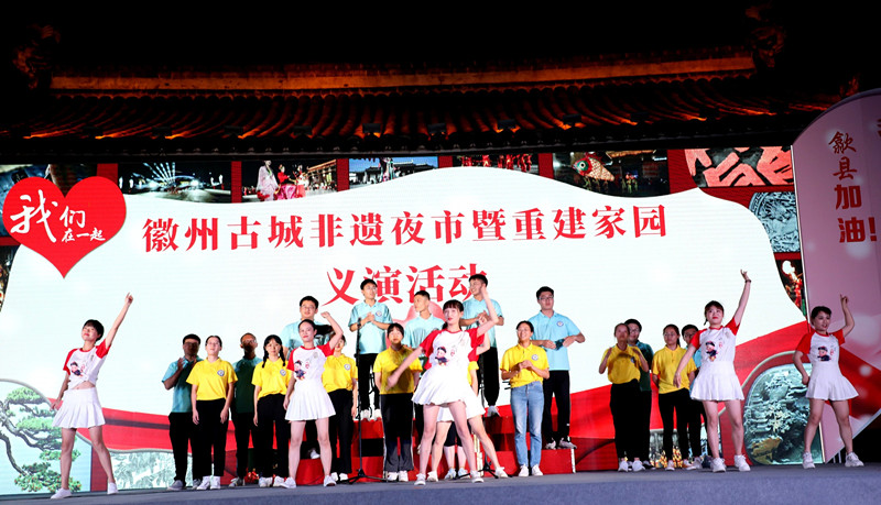 歙縣利用“非遺夜市”場所同時舉辦義演活動,旨意讓更多的群眾參加義賣、義捐獻愛心,共同出力重建家園,展示歙縣人民的奉獻精神和愛國愛家情懷。