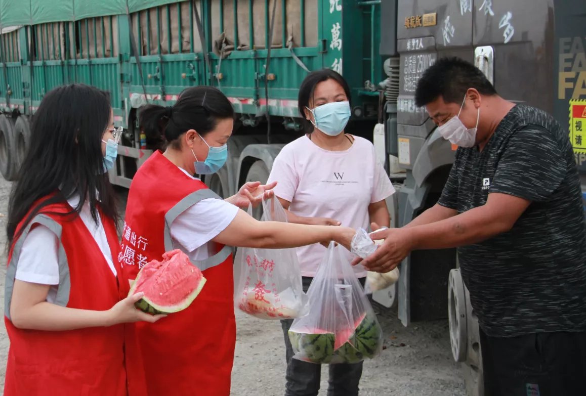 同樣,在經開區(頭區)絲路社區,經開區(頭區)區委宣傳部駐絲路社區訪惠聚工作隊幹部和社區志願者也準備了包子、饅頭、熱水、西瓜等餐食和水果,送到短暫滯留在轄區的大貨車司機手裡。