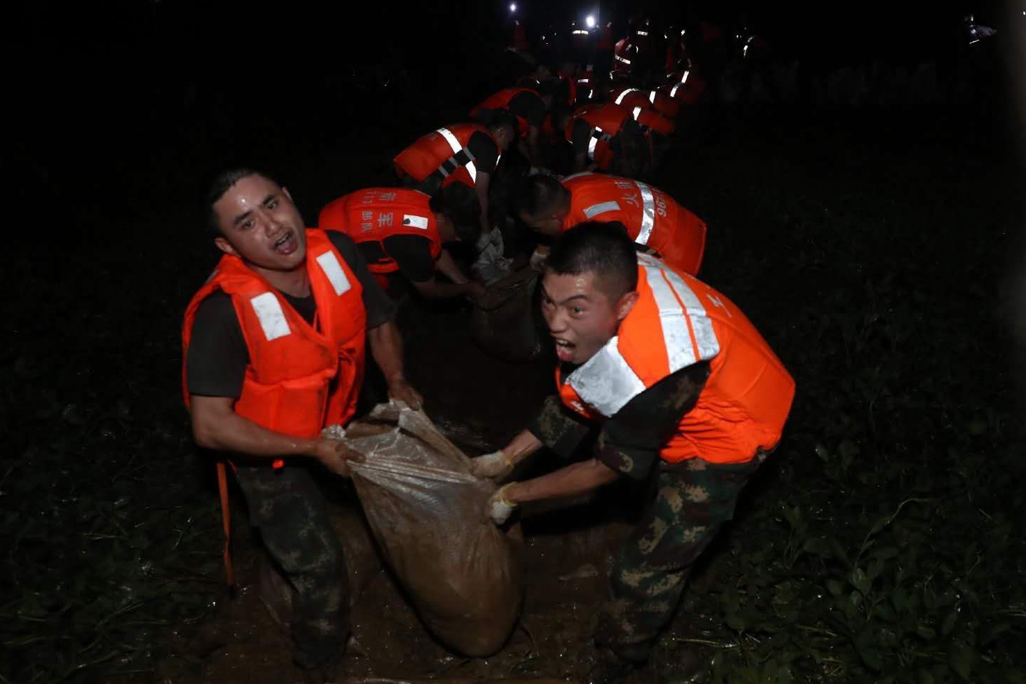 截至7月16日,火箭軍部隊支援鄱陽湖抗洪官兵主要擔負鄱陽縣47.5公里的大堤巡壩、堵塞管湧、疏散群眾等任務,先後處置281處管湧險情,搬運5萬餘個沙袋,守護35萬百姓和15萬畝良田安全。